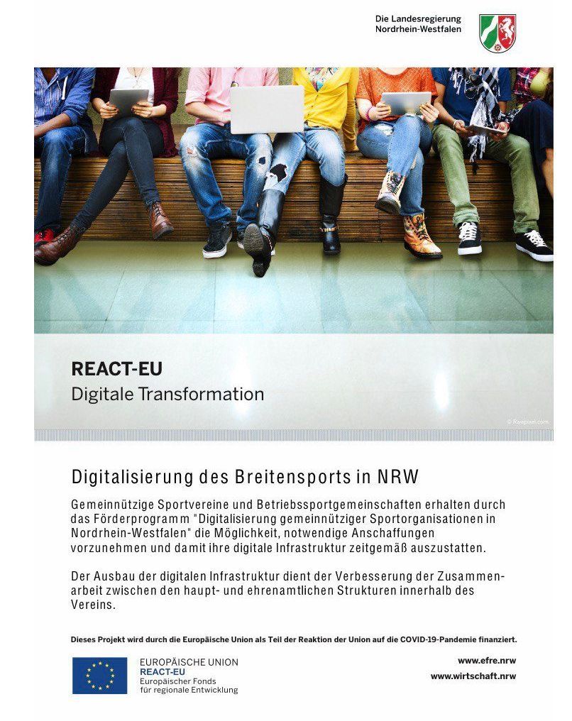 wir haben im Rahmen des Programms "Digitalisierung gemeinnütziger Sportorganisationen in Nordrhein-Westfalen" Fördermittel beantragt.